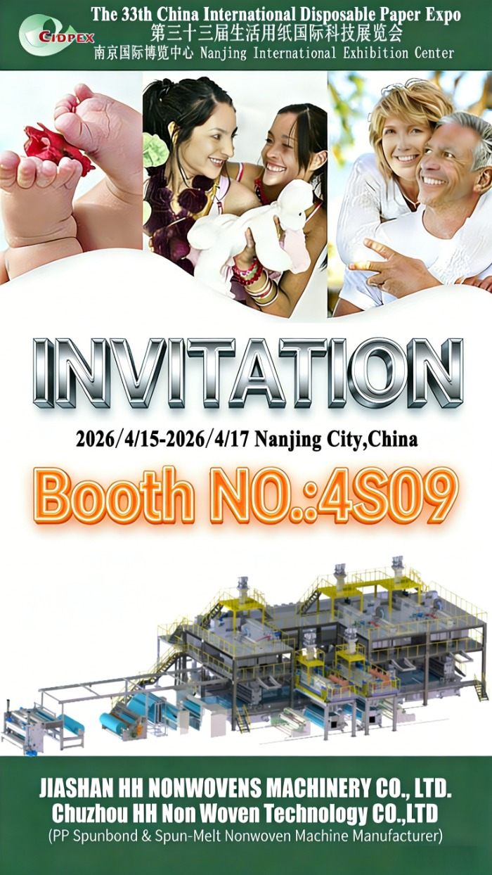 JIASHAN HH Nonwovens Machinery CO., LTD. a Chuzhou HH Non Woven Technology CO., LTD s hrdosťou oznamujú našu účasť v 33. medzinárodná výstava jednorazového papiera v Číne (CIDPEX 2026) , odohrávajúci sa od 15. až 17. apríla 2026 , na medzinárodnom výstavisku Nanjing, mesto Nanjing, Čína.