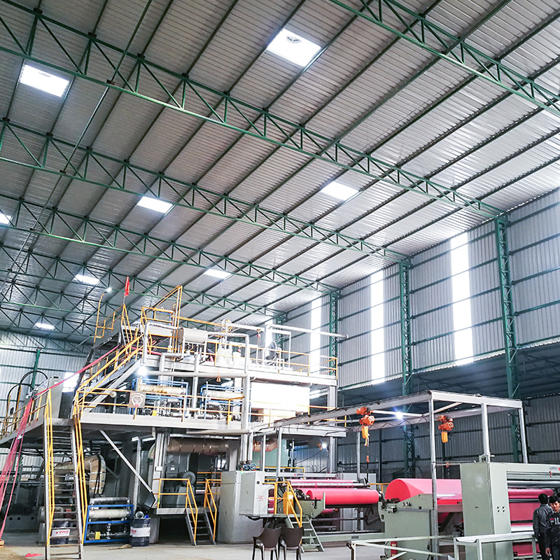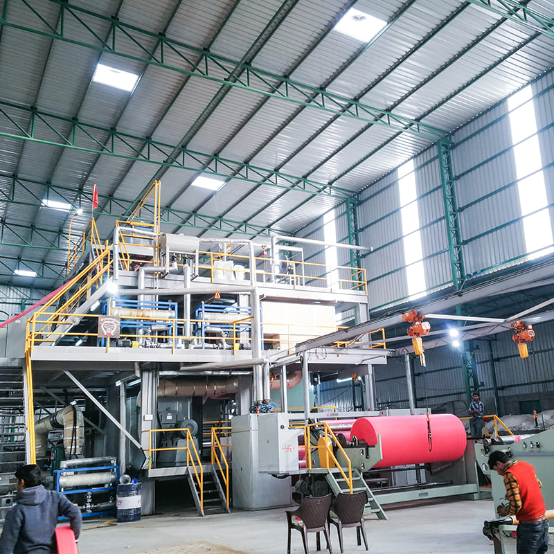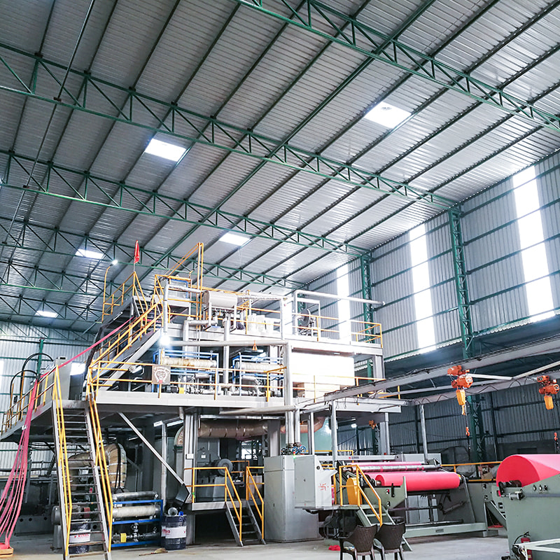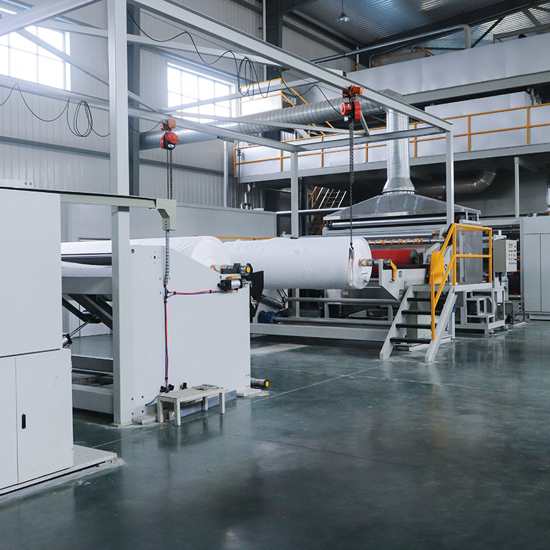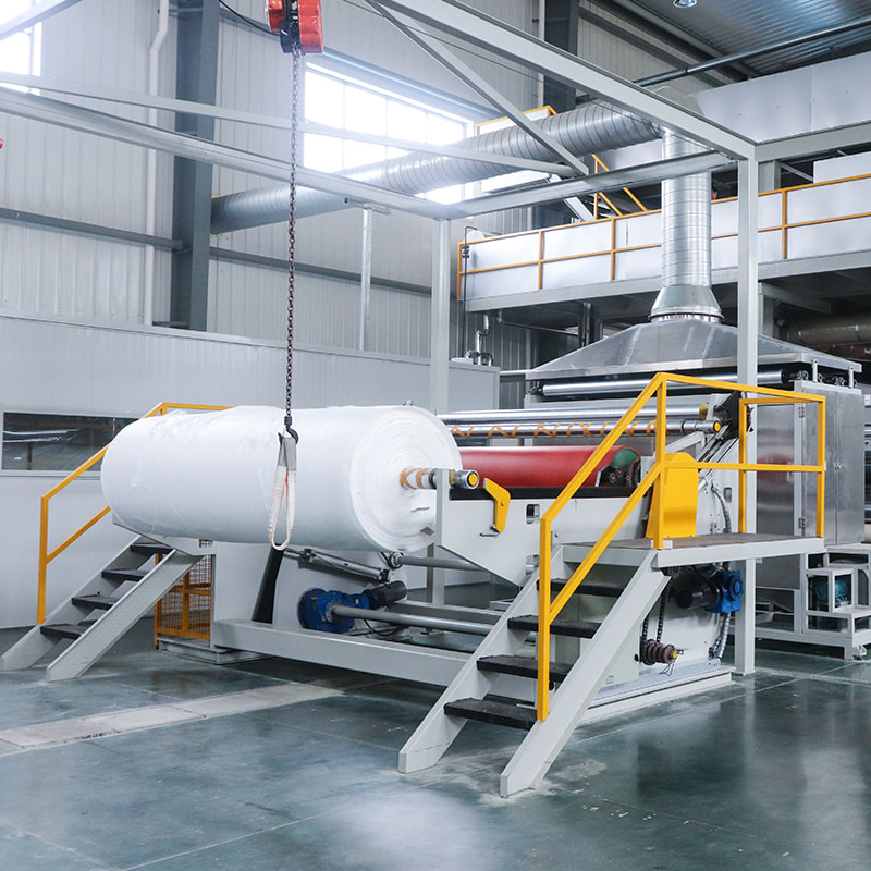Stroj na výrobu netkanej textílie typu PP spunbond sa používa na výrobu netkanej textílie typu pp spunbond. Pomocou rezačky v našom stroji je možné látku narezať na ľubovoľnú šírku, aby vyhovovala rôznym požiadavkám. Rýchlosť chodu stroja je 10-350 m/min, denier vlákna: 1,8-2,3 denier
