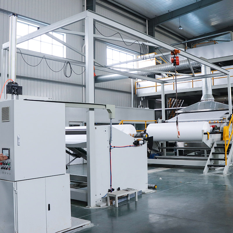 Stroj na výrobu netkanej textílie typu PP spunbond sa používa na výrobu netkanej textílie typu pp spunbond. Pomocou rezačky v našom stroji je možné látku narezať na ľubovoľnú šírku, aby vyhovovala rôznym požiadavkám. Rýchlosť chodu stroja je 10-350 m/min, denier vlákna: 1,8-2,3 denier