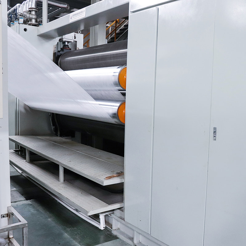Stroj na výrobu netkanej textílie typu PP spunbond sa používa na výrobu netkanej textílie typu pp spunbond. Pomocou rezačky v našom stroji je možné látku narezať na ľubovoľnú šírku, aby vyhovovala rôznym požiadavkám. Rýchlosť chodu stroja je 10-350 m/min, denier vlákna: 1,8-2,3 denier
