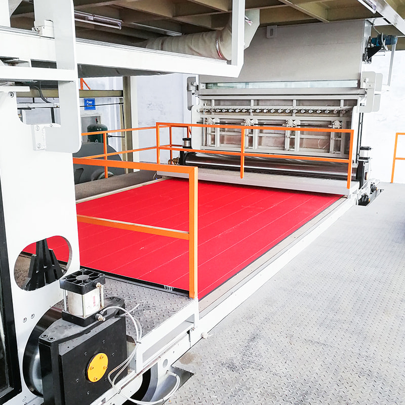 Stroj na výrobu netkanej textílie typu PP spunbond sa používa na výrobu netkanej textílie typu pp spunbond. Pomocou rezačky v našom stroji je možné látku narezať na ľubovoľnú šírku, aby vyhovovala rôznym požiadavkám. Rýchlosť chodu stroja je 10-350 m/min, denier vlákna: 1,8-2,3 denier
