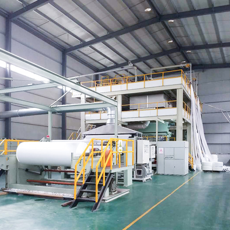 Stroj na výrobu netkanej textílie typu PP spunbond sa používa na výrobu netkanej textílie typu pp spunbond. S rezačkou v našom stroji je možné látku narezať na ľubovoľnú šírku, aby vyhovovala rôznym požiadavkám. Rýchlosť chodu stroja je 10-350 m/min, denier vlákna: 1,8-2,3 denier