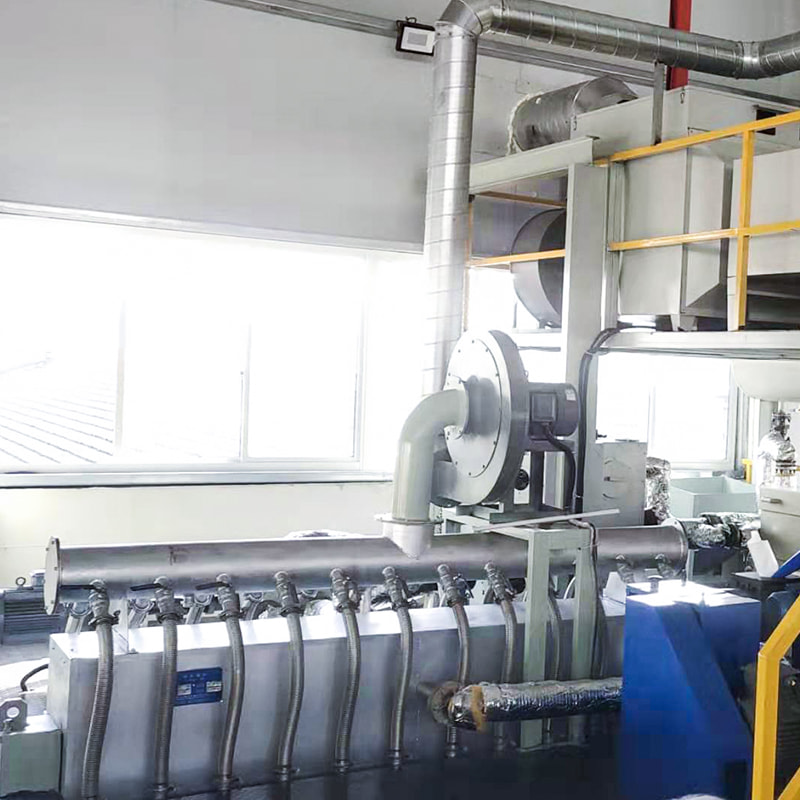Extrúzia a točenie: Zmiešané granule, ktoré teraz obsahujú antioxidant, podliehajú procesom extrúzie a točenia. Antioxidant sa stáva neoddeliteľnou súčasťou sponných vlákien.