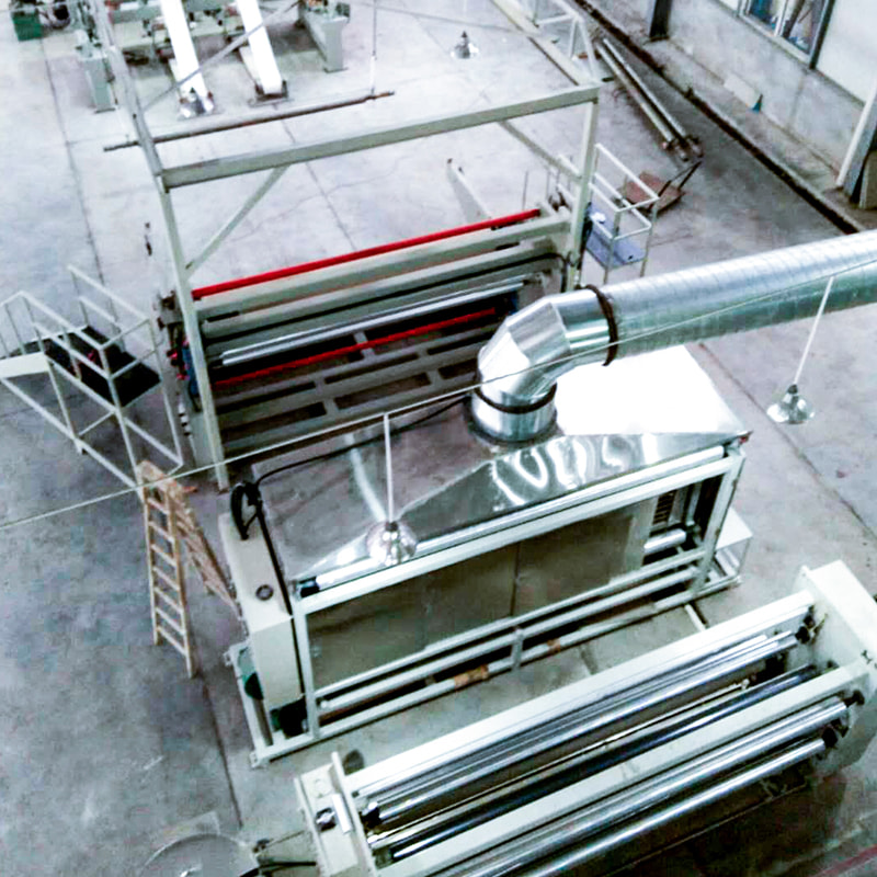 Stroj na výrobu netkanej textílie typu PP spunbond sa používa na výrobu netkanej textílie typu pp. S rezačkou v našom stroji je možné látku narezať na ľubovoľnú šírku, aby vyhovovala rôznym požiadavkám. Rýchlosť chodu stroja je 10-150 m/min, denier vlákna: 1,8-2,3 denier