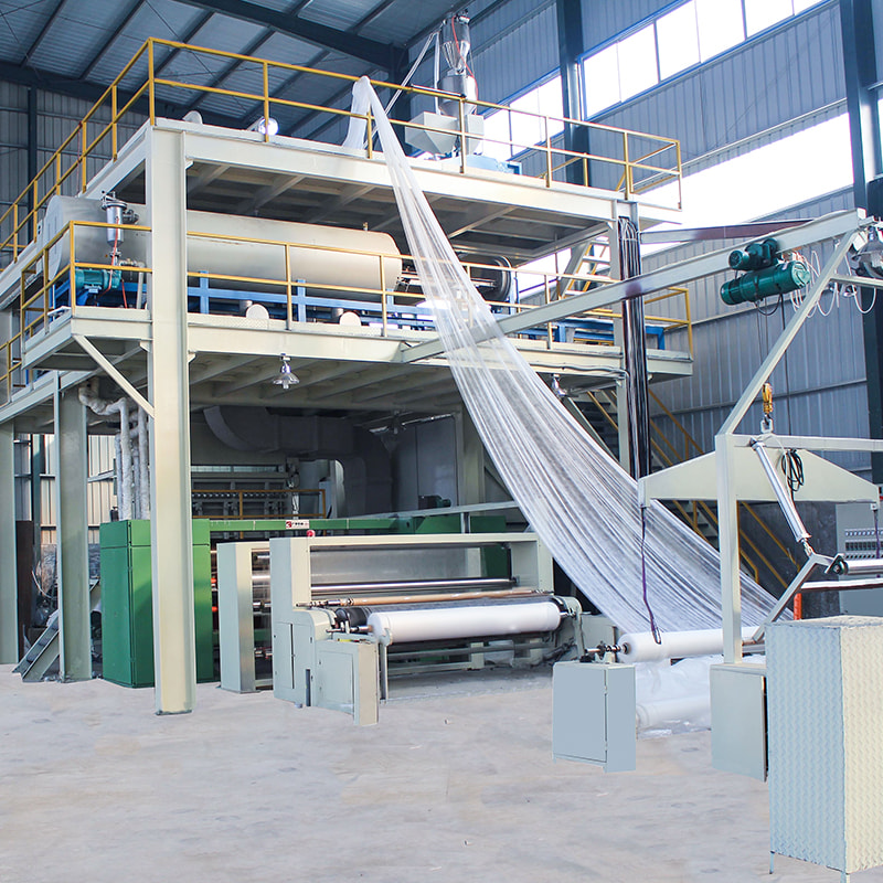 Stroj na výrobu netkanej textílie typu PP spunbond sa používa na výrobu netkanej textílie typu pp. S rezačkou v našom stroji je možné látku narezať na ľubovoľnú šírku, aby vyhovovala rôznym požiadavkám. Rýchlosť chodu stroja je 10-150 m/min, denier vlákna: 1,8-2,3 denier