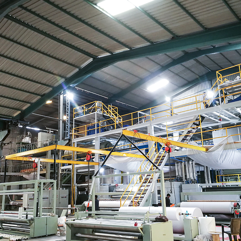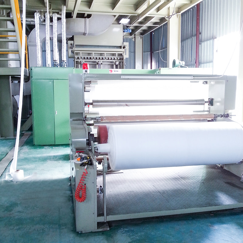 Stroj na výrobu netkanej textílie typu PP spunbond sa používa na výrobu netkanej textílie typu pp. S rezačkou v našom stroji je možné látku narezať na ľubovoľnú šírku, aby vyhovovala rôznym požiadavkám. Rýchlosť chodu stroja je 10-150 m/min, denier vlákna: 1,8-2,3 denier