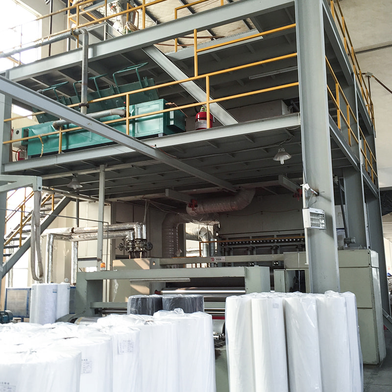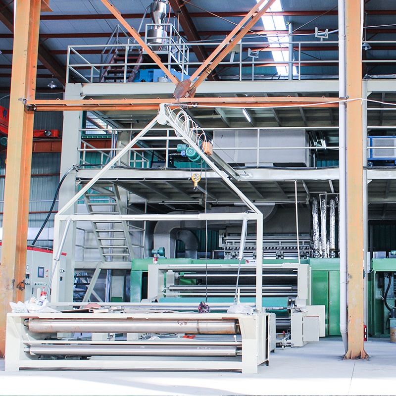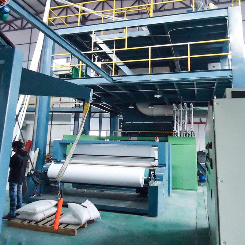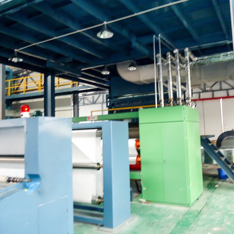 Stroj na výrobu netkanej textílie typu PP spunbond sa používa na výrobu netkanej textílie typu pp. S rezačkou v našom stroji je možné látku narezať na ľubovoľnú šírku, aby vyhovovala rôznym požiadavkám. Rýchlosť chodu stroja je 10-150 m/min, denier vlákna: 1,8-2,3 denier