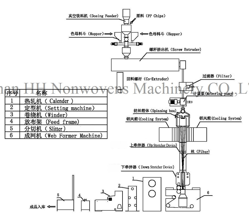 Okrem toho do polyméru: Retardancie ohňa sa pridávajú do polypropylénového polyméru buď počas zloženia granúl alebo priamo počas procesu extrúzie Single Beam S spunbond netkananý stroj .