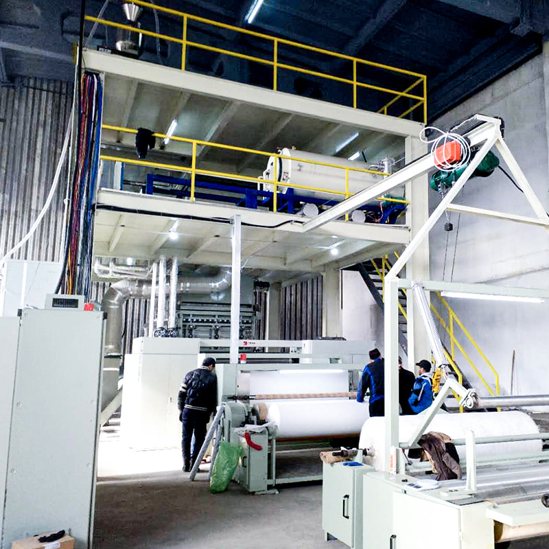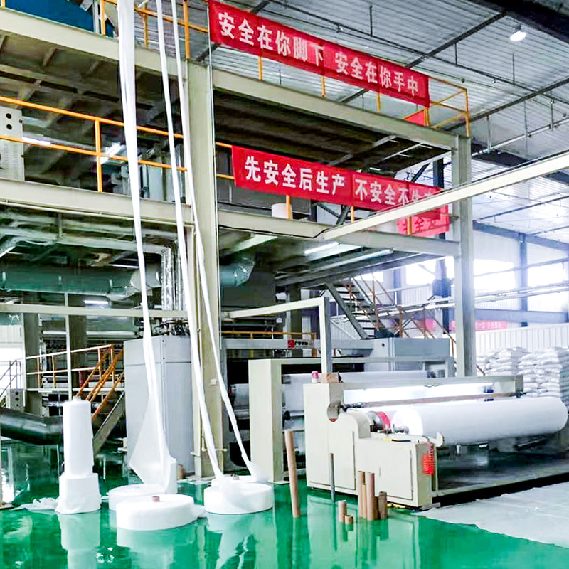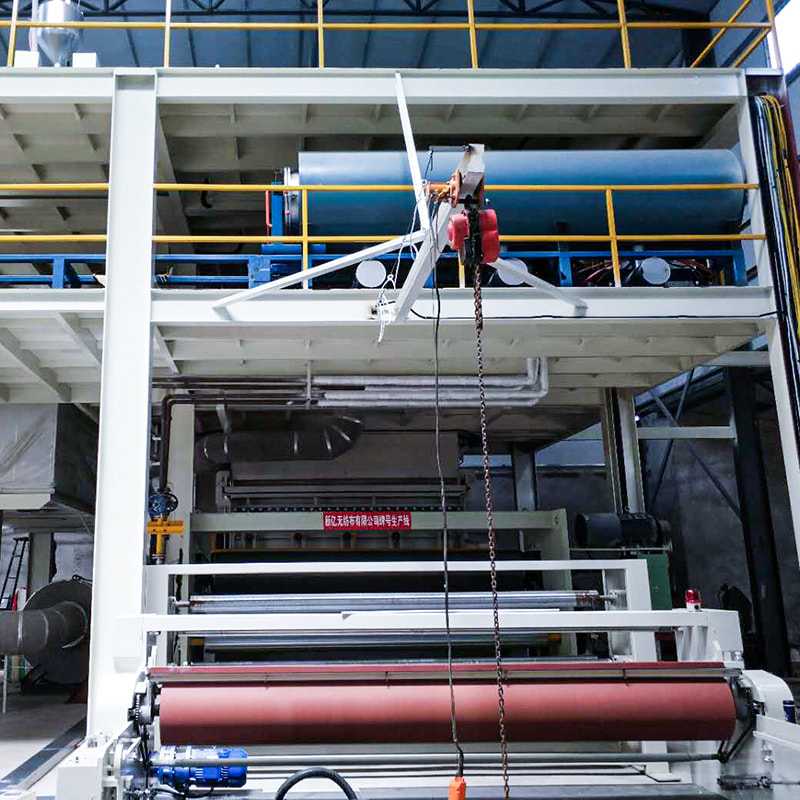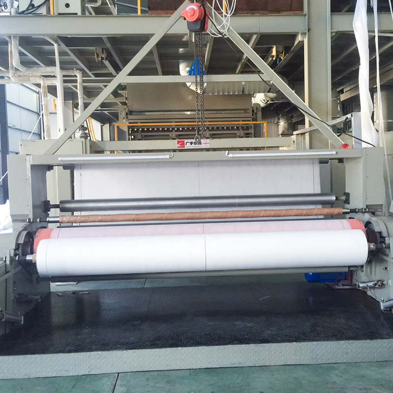 Stroj na výrobu netkanej textílie typu PP spunbond sa používa na výrobu netkanej textílie typu pp. S rezačkou v našom stroji je možné látku narezať na ľubovoľnú šírku, aby vyhovovala rôznym požiadavkám. Rýchlosť chodu stroja je 10-150 m/min, denier vlákna: 1,8-2,3 denier