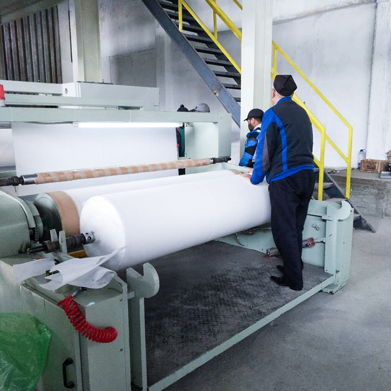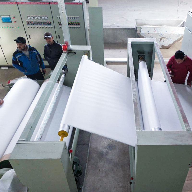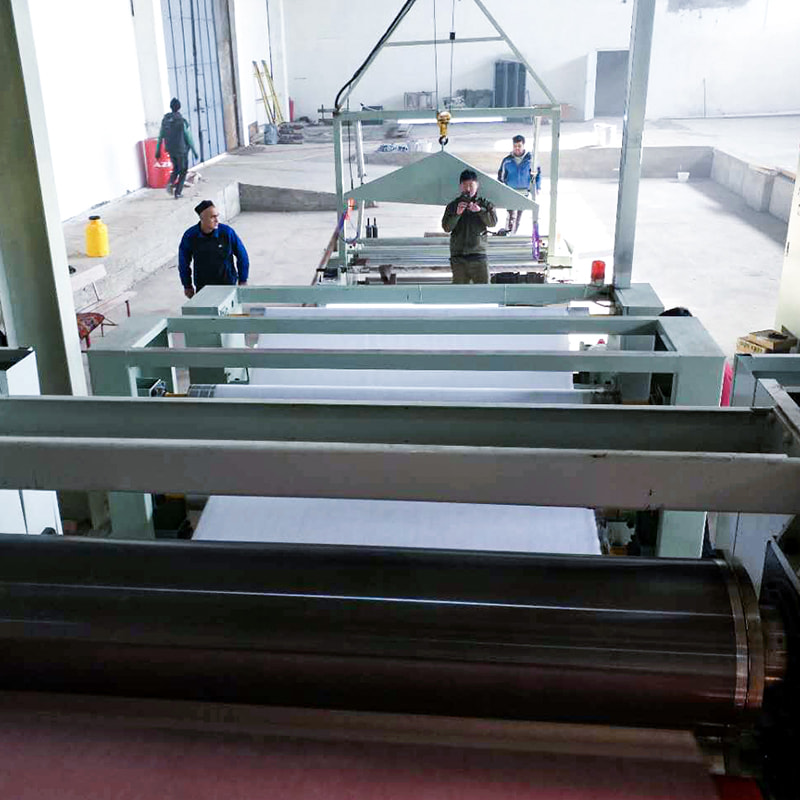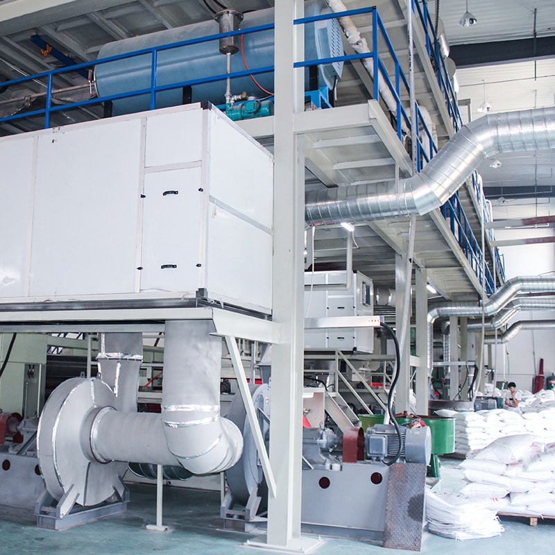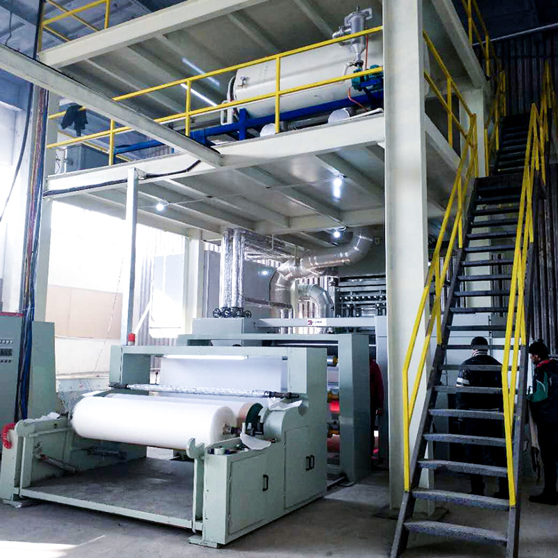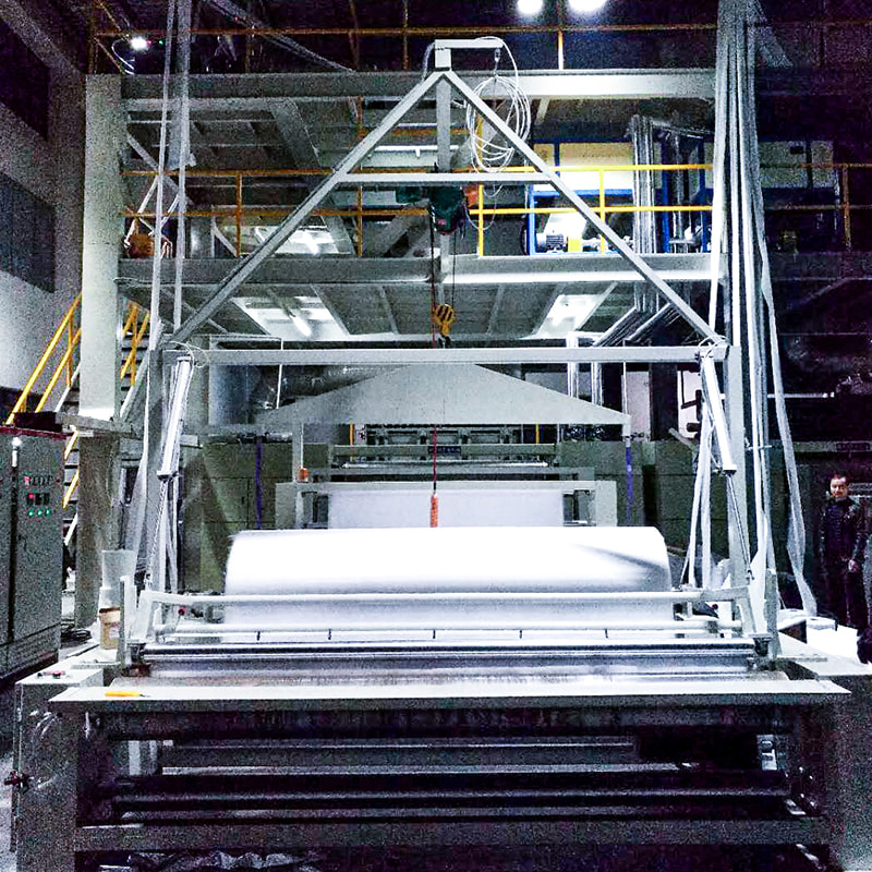Stroj na výrobu netkanej textílie typu PP spunbond sa používa na výrobu netkanej textílie typu pp. S rezačkou v našom stroji je možné látku narezať na ľubovoľnú šírku, aby vyhovovala rôznym požiadavkám. Rýchlosť chodu stroja je 10-150 m/min, denier vlákna: 1,8-2,3 denier